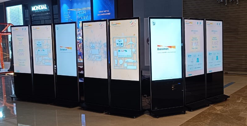 Sewa TV Digital Signage tersedia ukuran 43" dan 55". Rental digital signage di jogja biasa untuk pameran-pameran, display produk di mall dll. Bentuknya yang ramping dan elegan membuat tv digital signage ini banyak disukai customer. Terdapat operating system (OS) windows maupun android. Fasilitas touchscreen tersedia pada digital signage ini.